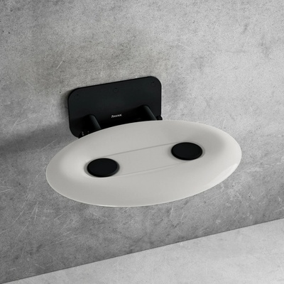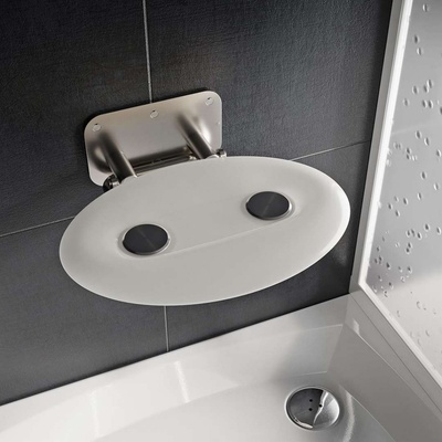 Sklopné sedátko Opal oválné barevné provedení sedáku - průsvitně bílá materiál konstrukce nerez rozměry 410 x 350 mm nosnost 150 kg použití v koupelnách, interiérech i...