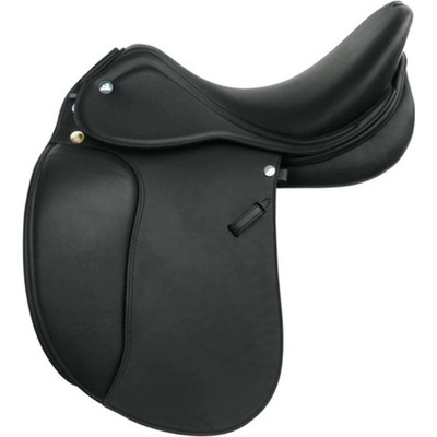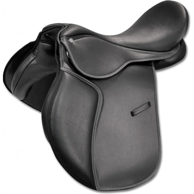 Všestranné školní kožené sedlo s madlem. Dodává se pouze ve velikosti posedlí 15''. Šířka komory cca 14 cm. Sklolaminátová kostra. Všestranné školní kožené sedlo s madlem....