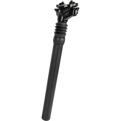 Odpružená sedlovka M-Wave s dvoubodovým uchycením na vzpěrách Průměr: 31,6 mm Délka: 350 mm Materiál: Al Barva: černá Výškový rozsah: 40 mm Vyznačená stupnice na...