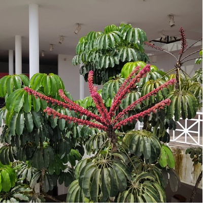 Šeflera actinophylla pochází z Austrálie a jihovýchodní Asie, kde se mu přezdívá deštníkový strom. Ve své domovině dosahuje výšky několika metrů, u nás dosahuje přibližně 150...