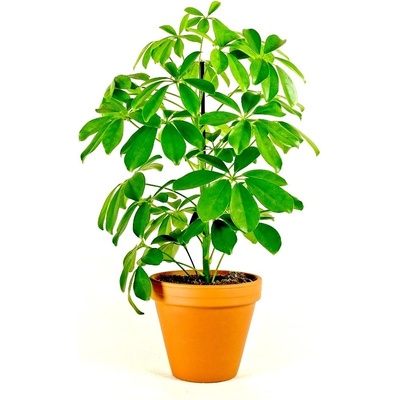 Tento druh šeflery má větší, zelené lístky rostoucídlaňovitě na vrcholcích štíhlých stonků, které rostou vzhůru ze středového kmínku.Šeflery, také se jim říká deštníkové stromy,...