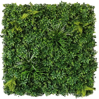 Realistická zelená stěna o rozměru 100 x 100 cm, která je tvořena kombinací zelených rostlin. U této stěny jsou dominantní listy šeflery. Je zde kombinován mix tmavě a světle zelených rostlin rostlin. Rozmístění jednotlivých druhů rostlin na dílcích se liší - při...