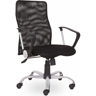 Kancelářská židle ROMA Pracovní židle ROMA je výškově nastavitelná židle s područkami. Síťovaný opěrák je v černém provedení a sedák je z černé, vrstvené látky mesh. Je vhodná spíše pro sezení domů k počítači. Klíčové vlastnosti židle ROMA - houpací mechanismus s...