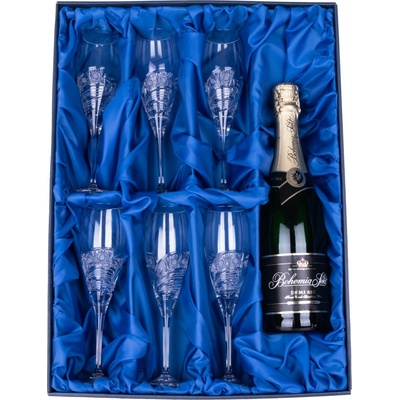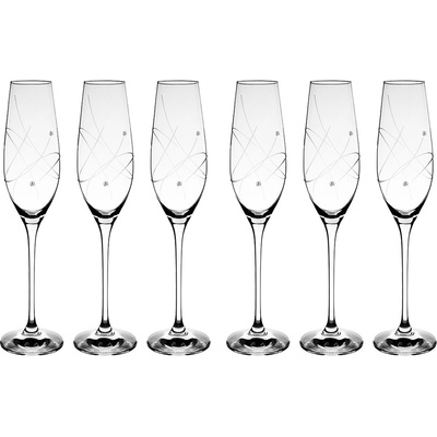 Elegantní souprava šesti sklenic na šampus, nebo prosecco. Vybroušený lehký moderní dekor a zdobeno Swarovski, nebo Preciosa krystaly. Baleno v papírové dárkové krabici. V...