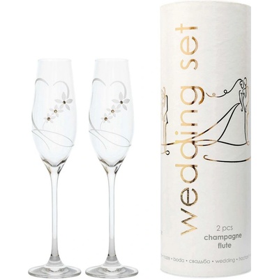 Skleničky Swarovski-flétna 210ml, 2 kusy v dárkovém balení v tubusu, Vás okouzlí krásou moderního broušeného skla zdobeného originálními krystaly Swarovski Elements. Skleničky...