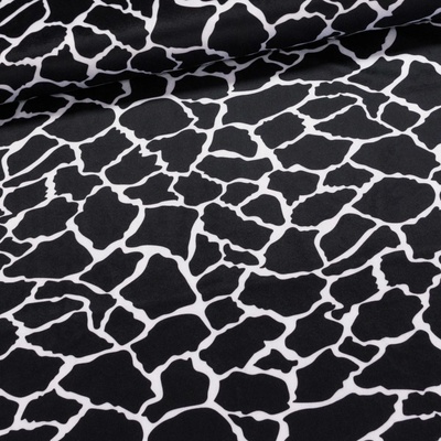 Potahová / dekorační látka semišový vzor žirafy v černo-bílé barvě. Slabší potahovka je v šířce 150 cm a je vyrobena ze 100% polyesteru (gramáž 250g/m2) vhodná na sedáky,...