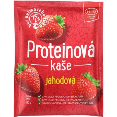 Semix Proteinová kaše jahodová 65g proteinová kaše s jahodami - Alergeny: produkt obsahuje mléko, obiloviny obsahující lepek a může obsahovat sezamová semena, skořápkové plody, sojové boby, vejce - Složení: OVESNÉ vločky, sušené MLÉKO odtučněné, SYROVÁTKOVÝ...