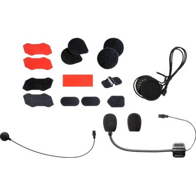 Sada vhodná pro integrální a výklopné přilby obsahuje: - Držák na přilbu - Pevný mikrofon - Tenký mikrofon - Prodlužovací kabel umožňující připojení např. peckových sluchátek