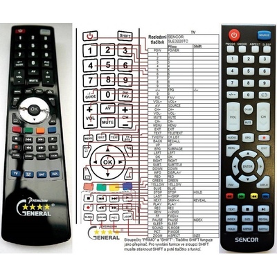 Dálkový ovladač SENCOR – přesná 1:1 náhrada (General Duremote) Perfektní duplikát originálního ovladače pro modely SENCOR: SLE1959TC, SLE1962TCS, SLE2000TC, SLE2467TCS, SLE3220TC, SLE3223TCS