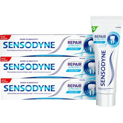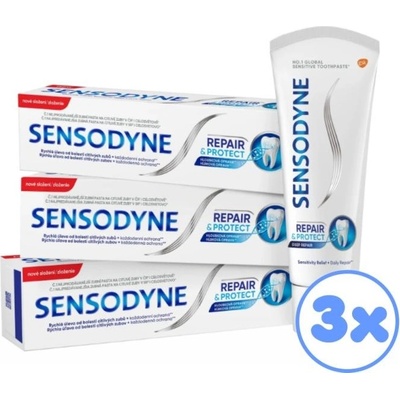 Sensodyne Repair Protect zubní pasta 3x 75 ml Zubní pasta Sensodyne Repair Protect poskytuje ochranu citlivým zubům novou technologií NOVAMIN®, která obsahuje komplex...