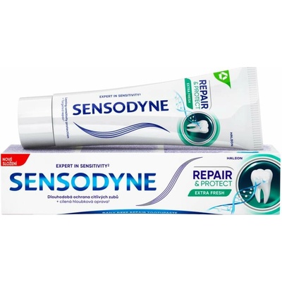 Sensodyne Repair&Protect Extra Fresh pomáhá opravit poškozená místa v zubovině jejich přirozeným zacelováním a chránit citlivé části zubů.