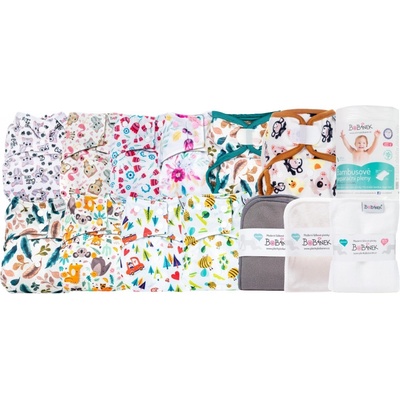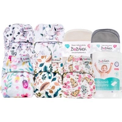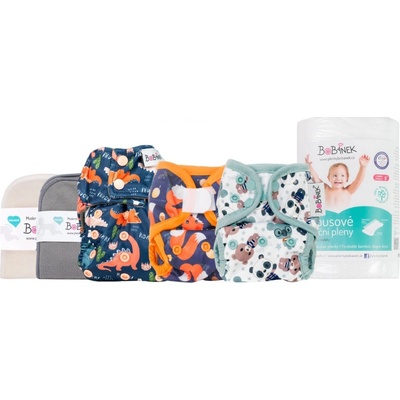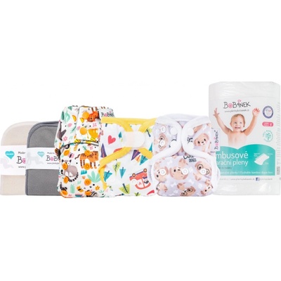 Akční kombinovaná startovací sada plenek Bobánek All in One (vše v jednom) a svrchních kalhotek Bobánek obsahuje 1x kapsovou plenku Premium bambus, 1x kapsovou plenku Premium,...