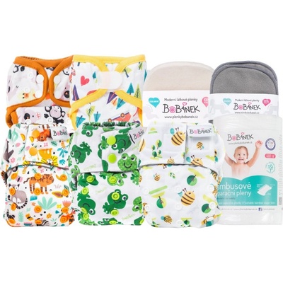 Akční kombinovaná startovací sada plenek Bobánek All in One (vše v jednom) a svrchních kalhotek Bobánek obsahuje 1x kapsovou AIO plenku Premium bambus, 1x kapsovou AIO plenku...