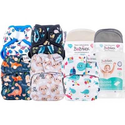 Akční kombinovaná sada plenek Bobánek je určena k plnému látkování a je v ní již zahrnuto vše co budete potřebovat. Obsahuje 10x kapsovou AIO plenku Premium, 2x svrchní kalhotky...