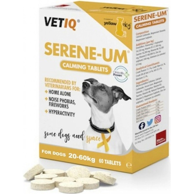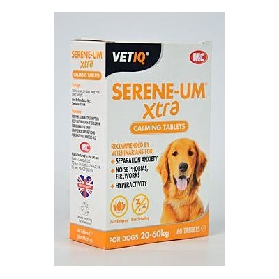 SERENE-UM Xtra (60tbl) Doplněk stravy Specifikace produktu - chutné tablety pro velká plemena psů - pomáhají zklidnit nervózní, bojácná, agresivní nebo hyperaktivní zvířata - klidní zvířata v době silného stresu (sám doma, ohňostroj, výstavy) - může pomoci s...