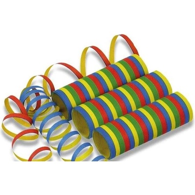 Serpentíny farebné mix; dĺžka 4 m; fóliové balenie obsahuje 18 ks; dodávané jednotlivo alebo v kartónovom balení po 40 ks.