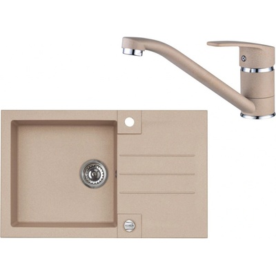 Cenově zvýhodněný set dřezu a baterie Alveus - obsahuje granitový dřez s odkapem Rock 130 Beige 55 a baterii Nina Beige 55.