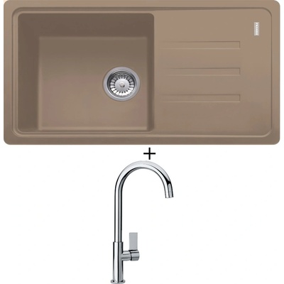 Franke SET G115 (dřez BSG 611-62 sahara+baterie FP 0408.031) 114.0440.628 Cenově zvýhodněný set Franke G115 obsahuje: - granitový dřez BSG 611-62 - baterie FP 0408.031 1. Granitový dřez s odkapem BSG 611-62 - spodní skříňka od 450 mm - rozměr: 620 × 435 mm - dřez:...