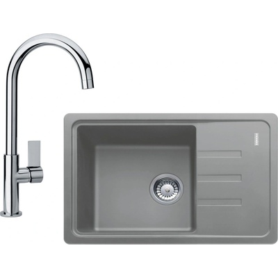 Franke SET G115 (dřez BSG 611-62 šedý+baterie FP 0408.031) 114.0440.670 Cenově zvýhodněný set Franke G115 obsahuje: - granitový dřez BSG 611-62 - baterie FP 0408.031 1. Granitový dřez s odkapem BSG 611-62 - spodní skříňka od 450 mm - rozměr: 620 × 435 mm - dřez: 340...