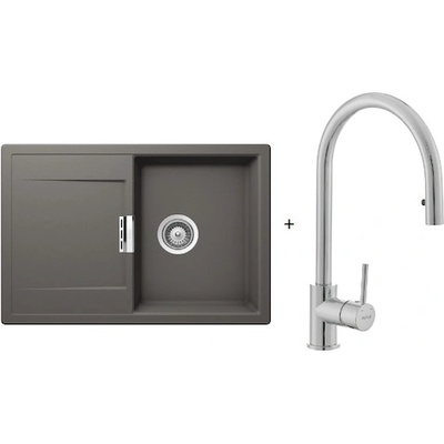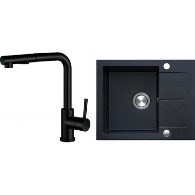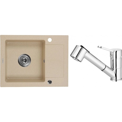 Deante Andante, 1-komorový granitový dřez 780x490x194 mm + černá baterie s elastickým ramenem, béžová, DEA-ZQNN5113 Popis: Světlé béžové granitové umyvadlo v kombinaci s...