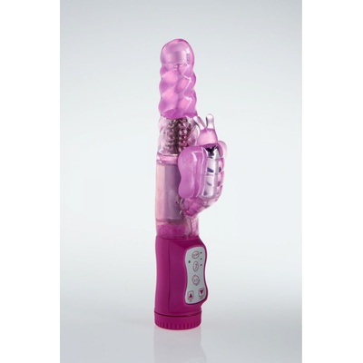 Rotační vibrátor Butterfly Silicone. Exkluzivní gelový vibrátor o průměru 2,5 až 3 cm a délce 21 cm je velký pomocník s množstvím závitů pro dokonalou stimulaci. Vibrační tělísko je umístěno ve výčnělku s tvarem motýla k uspokojení klitorisu. Ten je ovládán tlačítkem...
