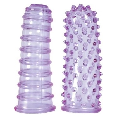 Sada dvou návleků na prst fialové barvy ke stimulaci klitorisu nebo vagíny. Jeden návlek má na povrchu stimulují drážky a druhý výstupky - oba dva zaručí maximální dráždění a intenzivnější sexuální prožitky. Díky voděodolnému PVC materiálu si lze tyto pomůcky vzít i do...