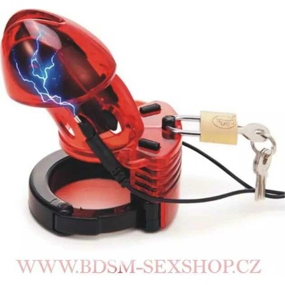 Pás cudnosti na elektrosex Polykarbonátový pás cudnosti s nastavitelným hlavním kroužkem. Uvnitř pásu cudnosti se nachází uretrální a obvodová elektroda z vodivého silikonu. Vzdálenost klece od hlavního kroužku je možné regulovat přidáním nebo odebráním podložek (4...