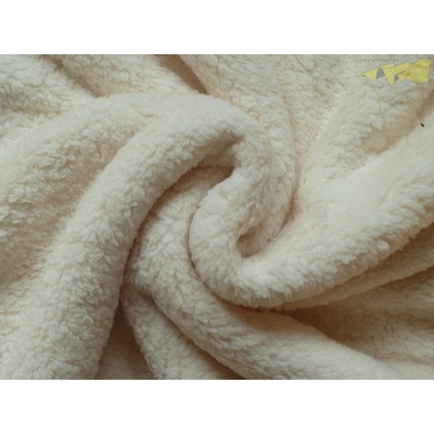 Beránek Sherpa s gramáží 300 g/m² je velmi jemná a měkká látka, ideální na zateplení oblečení, jako jsou mikiny, čepice, nákrčníky, ale také na podšití přikrývek, dek, polštářů...