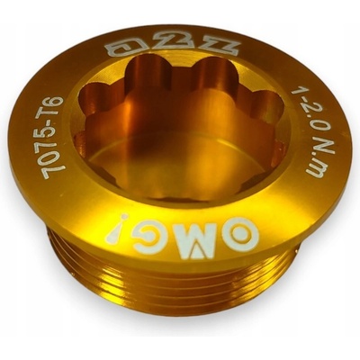 Šroub pro kliky Shimano A2Z Crank Cap - zlatý Hliníkový šroub pro upevnění klikového ramene Shimano Hollowtech II. Hliníková náhrada je mnohem lepší než originální šroub...