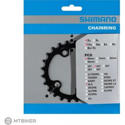 Najmenší prevodník SLX pre kľuky FCM7000, 11-kolo, 24 zubov. Bez nábehových zubov. Pre dvojprevodník.