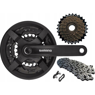 Sada pohonu SHIMANO KORBA 48 VOLNOBĚŽKA 7 ŘETĚZ Shimano V nabídce: Sada Korbový mechanismus 6/7/8rz Černá FC-TY301 48/38/28 170 mm - levá klika součástí balení - kliky pasují...