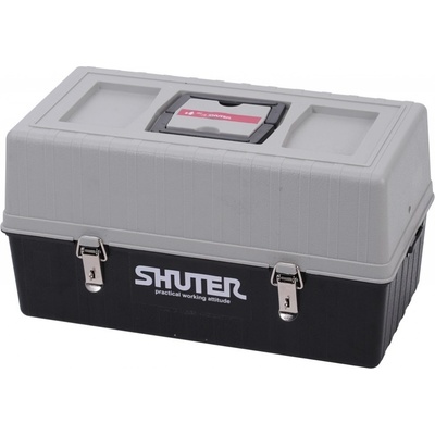- Kvalitní rozkládací kufr od značky SHUTER. - Vybaven 4 patry přihrádekna nářadí a drobný materiál. - Zapuštěné sklopné držadlo a kovové zavírací spony. - Vnější rozměry (Š x V x H): 426 x 225 x 235 mm. - Nosnost: 30 kg. - Objem: 14 litrů.