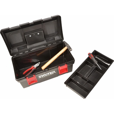 Kompaktní kufřík na nářadí světoznámé značky SHUTER z kvalitního polypropylenu je ideální pro přehledné uložení a přenášení nářadí i drobných součástek. Vnitřní prostor je vybaven vyjímatelnou policí, která usnadňuje organizaci menších dílů. Zapuštěné sklopné držadlo...