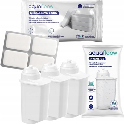 Sada AquaFloow pro kávovar Siemens: 3 x vodní filtr + čisticí a odmašťovací tablety + odvápňovač v tabletách + vytěrák Sada obsahuje: ✅ intenzivní vodní filtr – 3 kusy ✅...