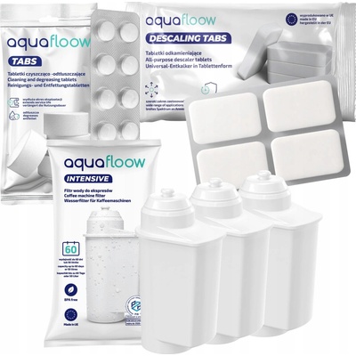 Sada AquaFloow pro kávovar Siemens: 3 x vodní filtr + čisticí a odmašťovací tablety + odvápňovač v tabletách Sada obsahuje: ✅ intenzivní vodní filtr – 3 kusy ✅ čistící a...