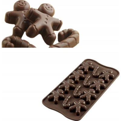 Kvalitní silikonová formička Silikomart na odlití 12 ks čokoládových figurek - 8x Panáček Perníček, 4x hůlka. Formička je zabalená v pěkné papírové krabičce.