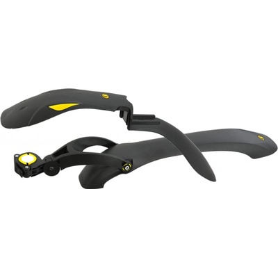 Set předního a zadního blatníků Simpla HAMMER3 SDE černo-žluté. - přední plastový blatník do vidlice - pro průměr kol 24"-29" - délka: 530mm, šířka: 97mm, výška: 215mm - hmotnost: 115g - zadní plastový blatník na sedlovku průměru 24mm-32,8mm - upínání pomocí...