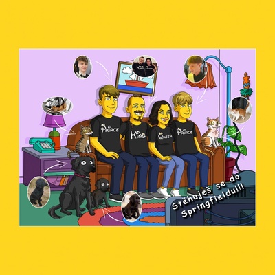 Ze zaslaných fotografií vás, vašich přátel nebo vaší rodiny namalujeme karikaturu ve stylu seriálu Simpsonovi na vybraném pozadí. Je to jen na vás. Chcete pána na motorce? Dítě...