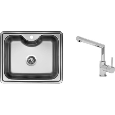 Cenově zvýhodněný set dřezu a baterie Sinks - obsahuje nerezový jednodřez Bigger 600 V 0,8 mm, matný a baterii s vytahovací koncovkou Mix 350 P Chrom - lesklý.