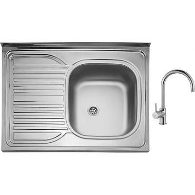 Nerezový dřez - Konstrukční typ: Dřezy s odkapem; - Spodní skříňka: 800 mm; - Vnější rozměry: 800 x 600 mm; - Rozměry vany: 370 x 415 mm; - Hloubka dřezu: 155 mm; -...