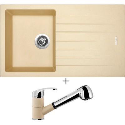 Cenově zvýhodněný set dřezu a baterie Sinks - obsahuje granitový dřez s odkapem Perfecto 860 Titanium 72 a baterii s vytahovací koncovkou Mix 350 P Chrom - lesklý.