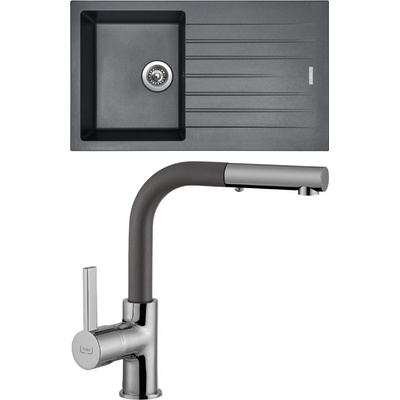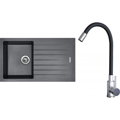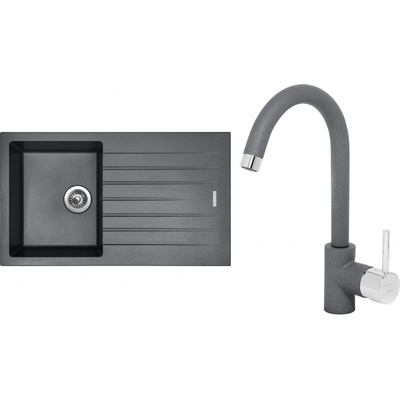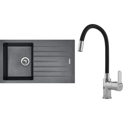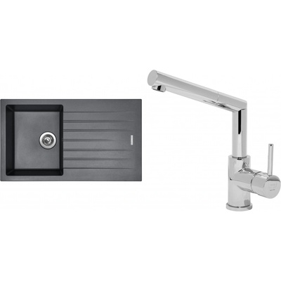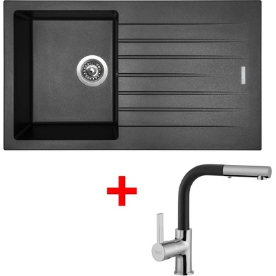 Cenově zvýhodněný set dřezu a baterie Sinks - obsahuje granitový dřez s odkapem Perfecto 860 Titanium 72 a baterii Elasta Nerez/Černá.