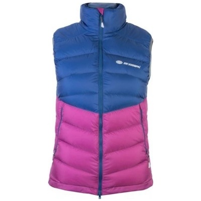 '.Dámská zimní péřová voděodolná vesta určená pro zimní sporty i každodenní nošení ve městě. Barva tmavě modrá v kombinaci s vínovo růžovou. S novým svrchním materiálem (DWR úprava 1.000 mm H20). Nová konstrukce průramků s 3/4 elastickým obšitím maximalizuje volnost...