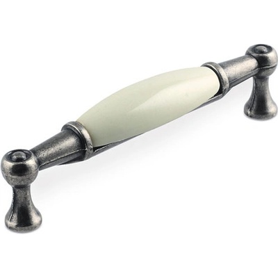 Rustikální úchytka AURORA - Délka: 107 mm, Rozteč: 96 mm, Povrch: starostříbro, je elegantní nábytková úchytka s kombinací kovu a keramického prvku. Kovové části úchytky mají...