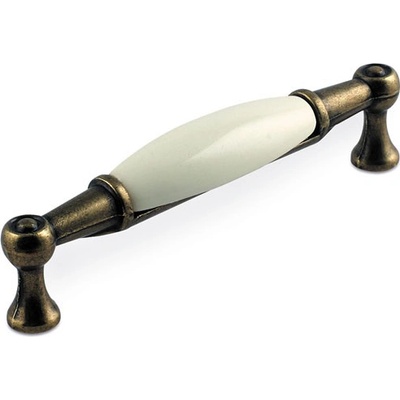 Rustikální úchytka AURORA Délka: 107 mm, Rozteč: 96 mm, Povrch: staromosaz je elegantní nábytková úchytka s kombinací kovu a keramického prvku. Kovové části úchytky mají antik...