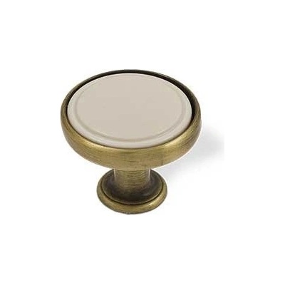 Siro 14019. Povrchová úprava: staromosaz brinýr, výplň - imitace porcelánu béžového. Průměr 30 mm.
