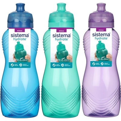 Stylová láhev Sistema Hydrate Wave Twist ‘n’ Sip 600 ml s ergonomickým designem a hygienickým uzávěrem je ideální na sport, cestování i každodenní použití.