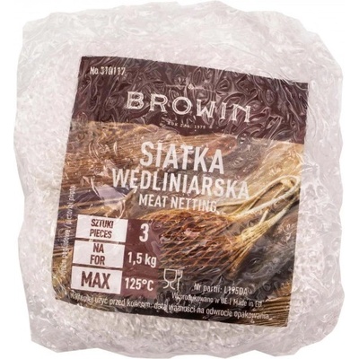 Síťovina na maso značky Browin. V kuchyni je nepostradatelný a poslouží při uzení, opaření, pečení, sušení a zrání masa, např. vepřové kýty a krkovice.Nepostradatelný v kuchyni...