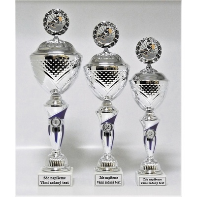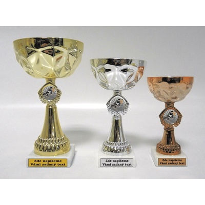 357-K057. Poháry s pořadím. Průměr kalichů 16, 14, 12 cm. Velikost poháru včetně celokovového nosiče loga je uvedena za lomítkem katalogového čísla. Při nákupu celé sady pohárů...