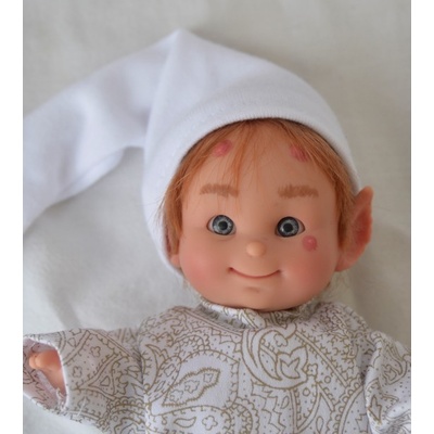Skřítek z textilu se zlatou čepicí s flitrami. Velikost 11 cm.